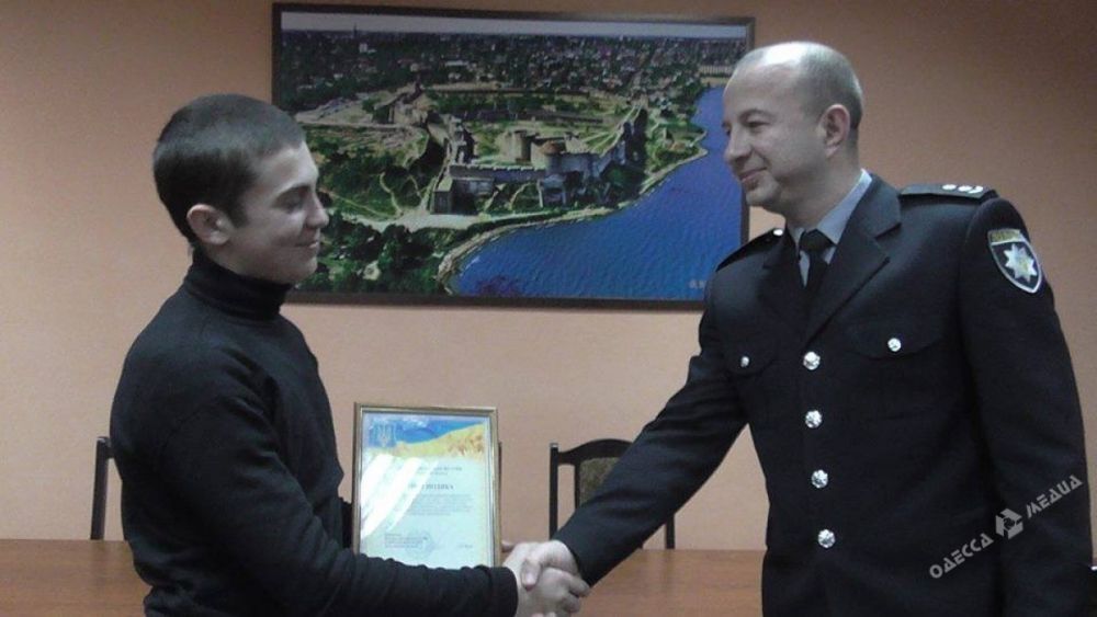 За активную гражданскую позицию начальник Белгород-Днестровского отдела ГУНП Евгений Орлов вручил молодому человеку благодарственный лист.