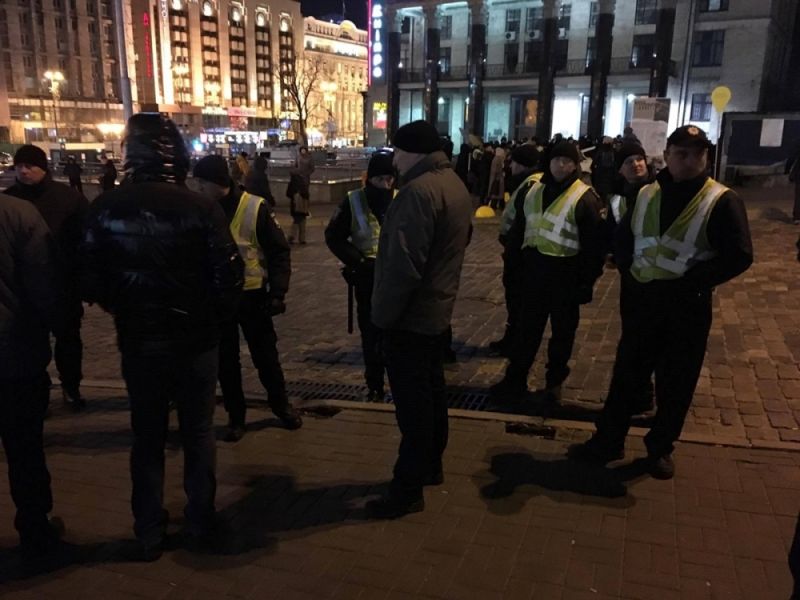 Отмечается, что активисты пытались поджечь шины, после этого ворвались полицейские и снесли ранее установленные палатки. Активисты оттеснили полицейских к Институтской.