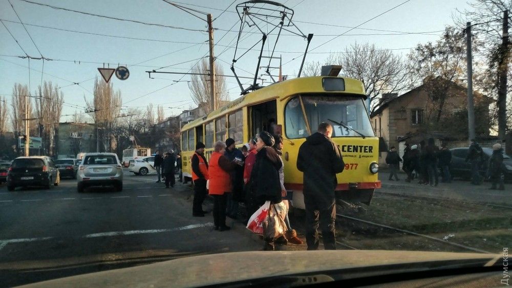 Девушка в капюшоне перебегала пешеходный переход на красный свет. Водитель трамвая подала звуковой сигнал и применила экстренное торможение, однако избежать столкновения не удалось. Девушку отбросило на встречную полосу, и под вагон она не попала», — сообщили в пресс-службе КП «Одесгорэлектротранс».