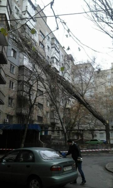 Утром во вторник, 28 ноября, на многоэтажный жилой дом №58 на ул. Шоссейная в Николаеве рухнул огромный сухой тополь.