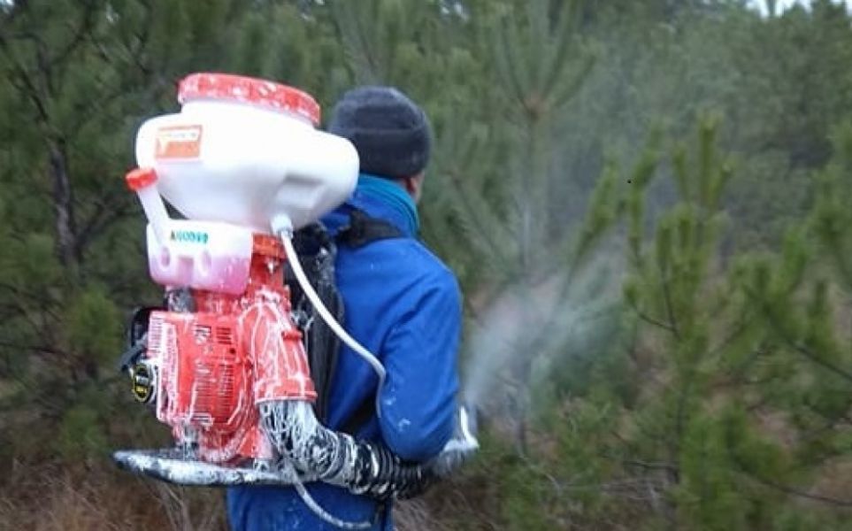 Николаевские общественные активисты опрыскали сосны в Матвеевском лесу для предотвращения незаконной вырубки перед Новым годом.
