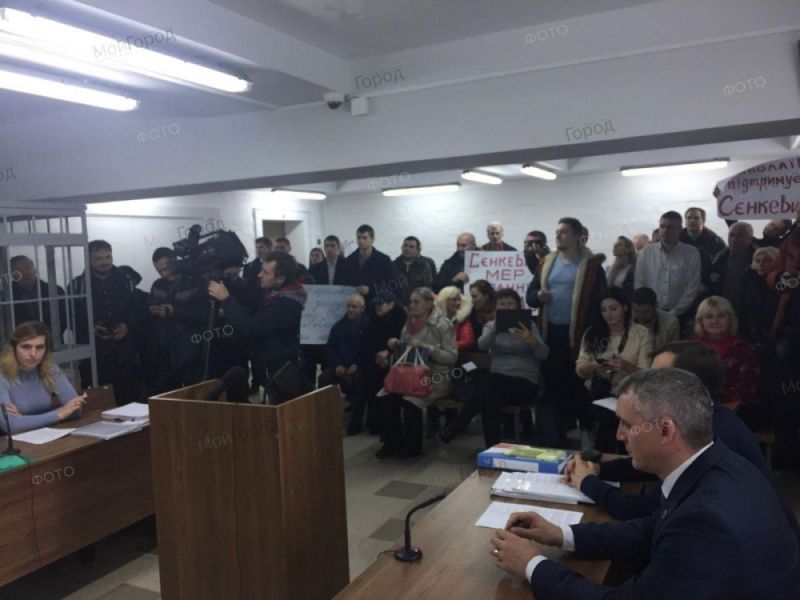 Рассмотрение дело проходит под председательством судьи Александра Чулупа. На заседание пришло много активистов с плакатами в поддержку Сенкевича, в том числе глава фракции «Самопомощь» в горсовете Федор Панченко. Также присутствует советник мэра Игорь Смородинов.