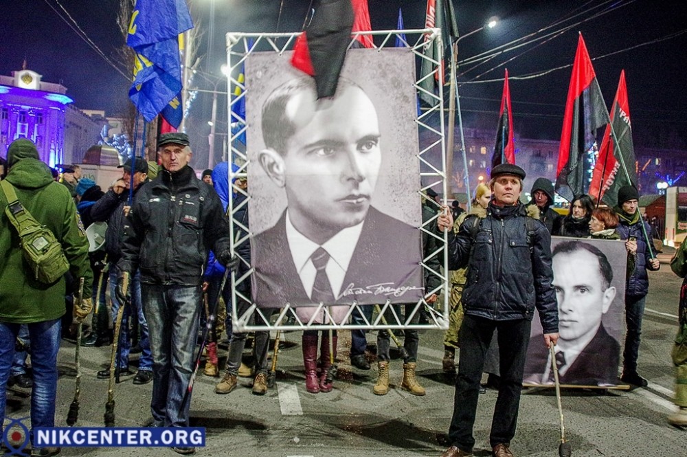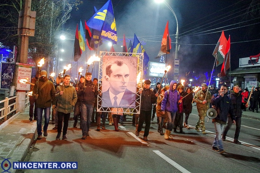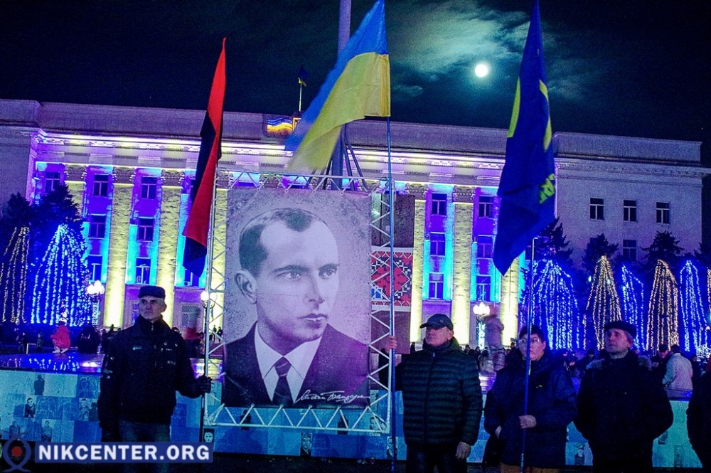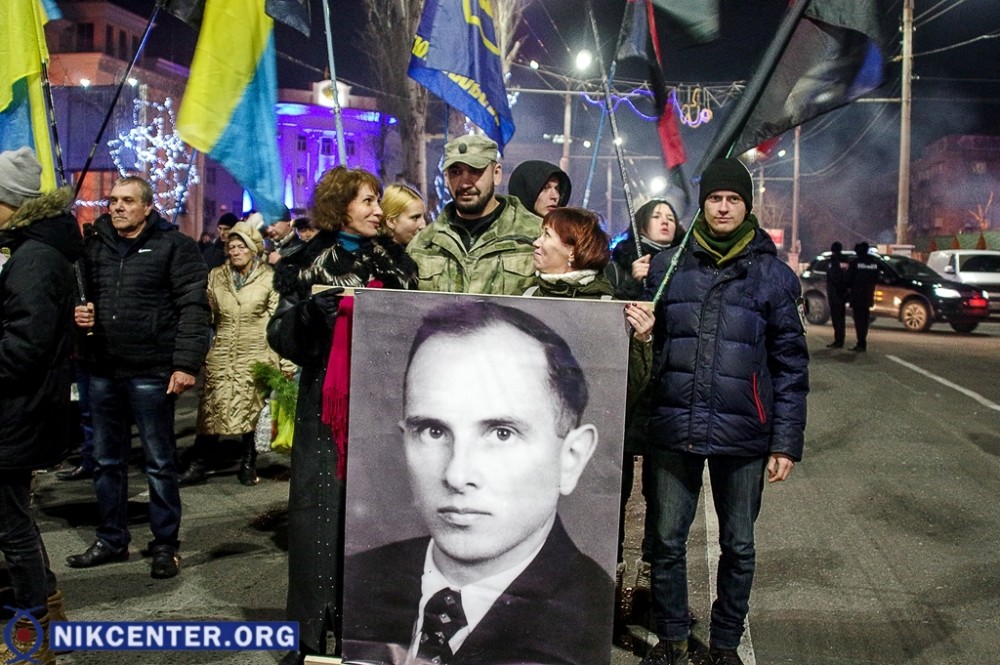 Активисты националистических партий и общественных организаций провели в центре Херсона митинг и факельное шествие по случаю 109-й годовщины со дня рождения Степана Бандеры.