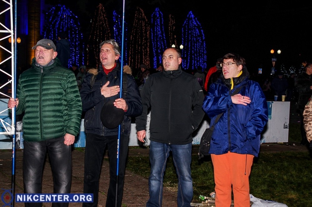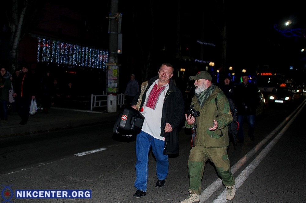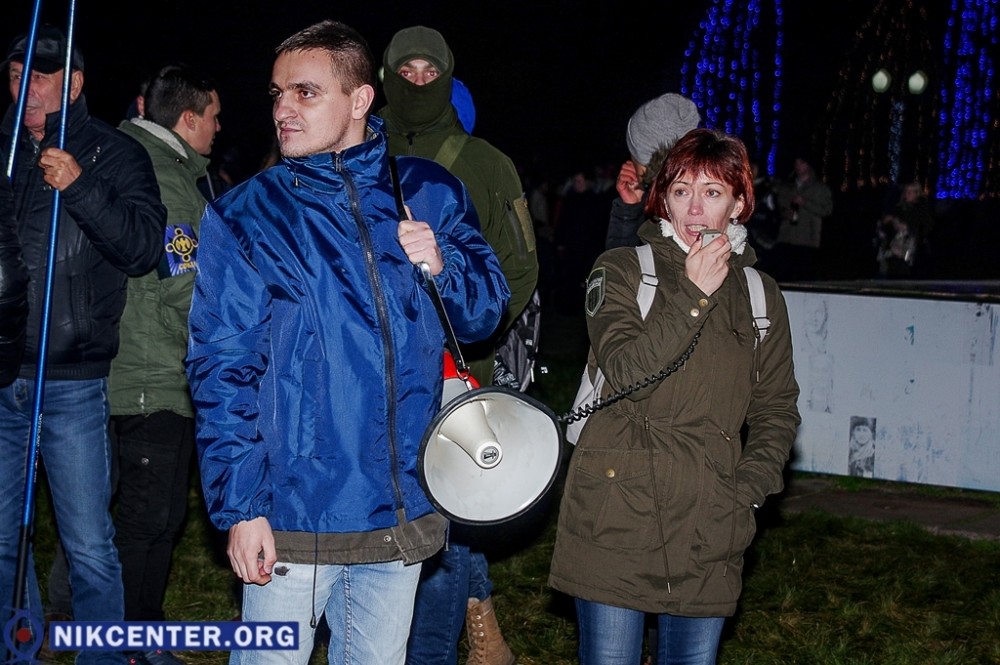 После митинга состоялось факельное шествие, участники которого прошли по центру Херсона от площади Свободы до мемориала "Слава Украине".