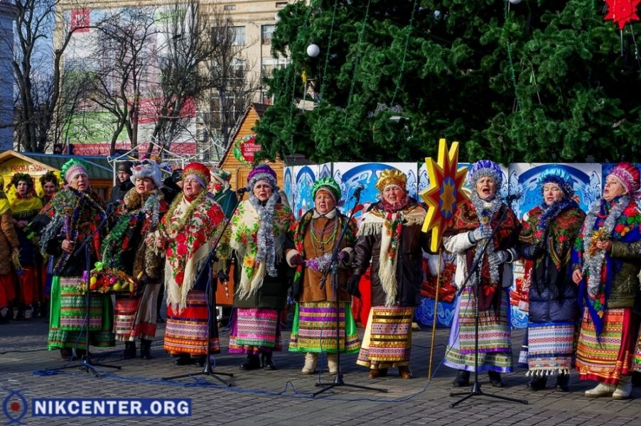 Для херсонцев выступили народные художественные коллективы, которые исполнили старинные обрядовые песни, исполняемые во время зимних праздников.