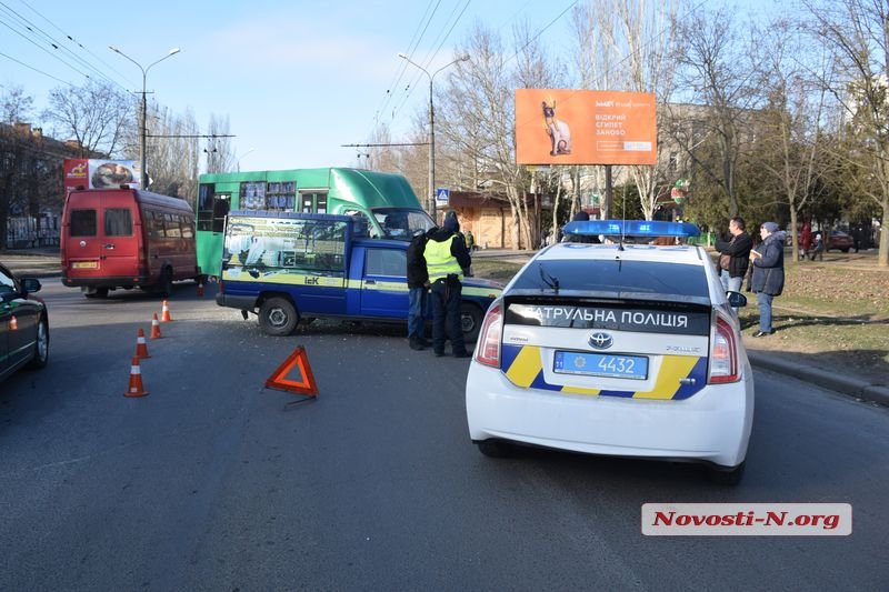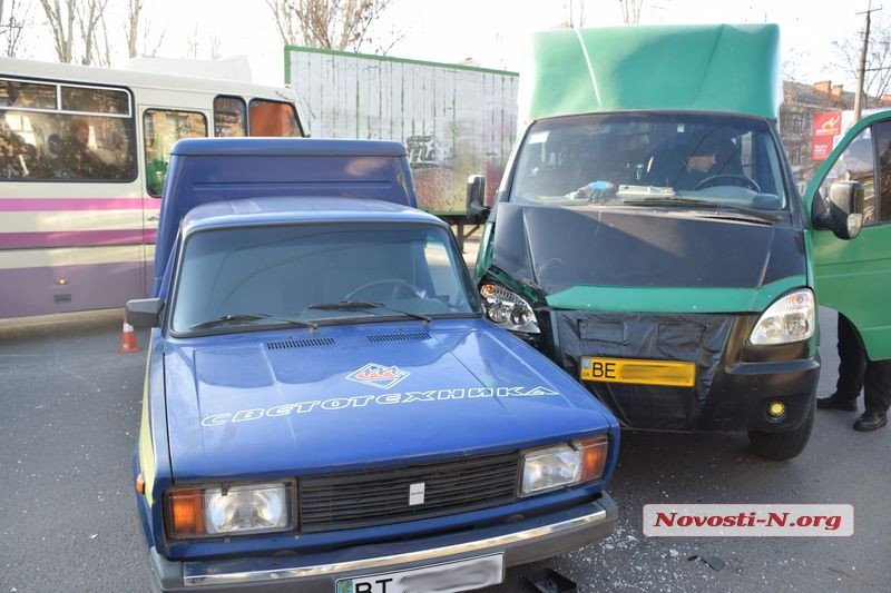 Днем в понедельник, 15 января, на пересечении проспекта Мира и улицы Южной в Николаеве, столкнулись маршрутка «Рута» 121 маршрута и автофургон «Иж 27175».