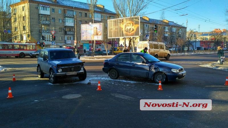 Утром в среду, 24 января, на пр. Центральном в Николаеве столкнулись автомобили «Нива» и Daewoo Lanos.