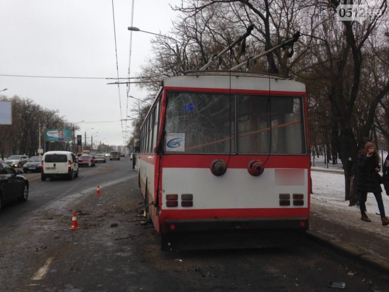 Оба транспортных средства двигались в сторону Ингульского моста. Напротив магазина Metro водитель "хлебовоза" совершил столкновение с двигавшемся в правом ряду троллейбусом. От удара автомобиль занесло и оторвало кабину, в которой находился хлеб.