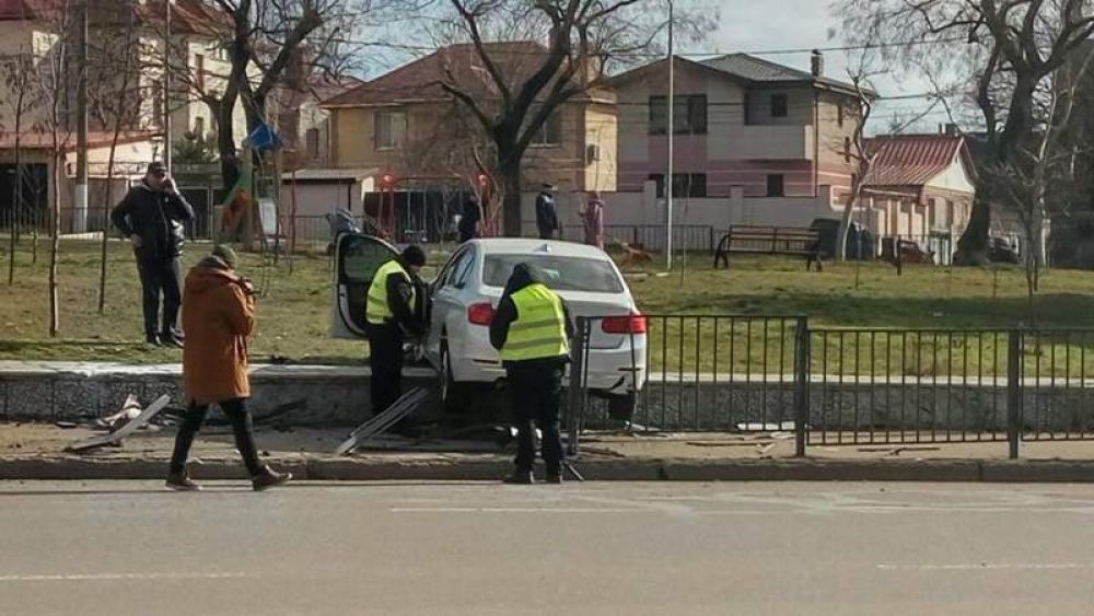 Сегодня, 5 февраля на 9-й станции Большого Фонтана водитель BMW, протаранив ограждение, влетел на метровый бордюр.