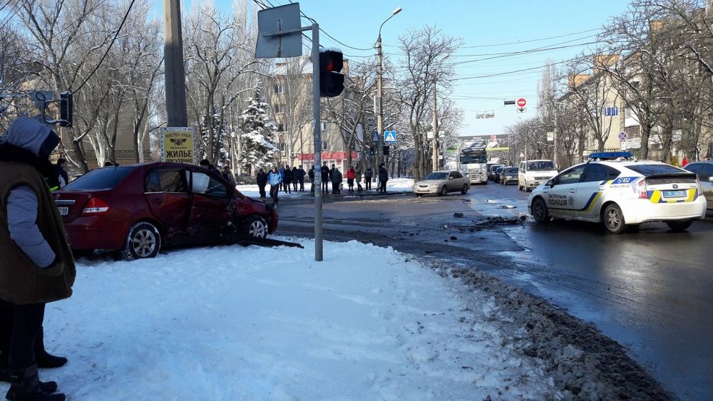 В Николаеве полицейский автомобиль на перекрестке столкнулся с Nissan