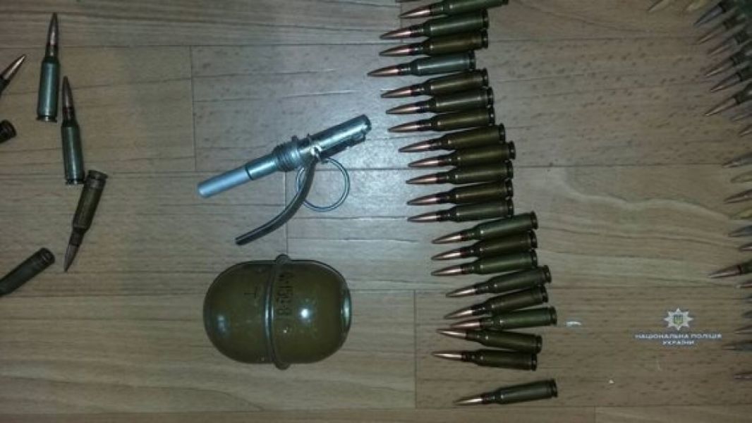 Получив разрешение суда на проведение обыска, правоохранители вместе с сотрудниками Первомайского отделения СБУ в Николаевской области в одной из комнат дома правонарушителя обнаружили сумку, внутри которой находились 205 патронов калибра 5,45 мм, граната РГД-4, две сигнальные ракеты и пластид.
