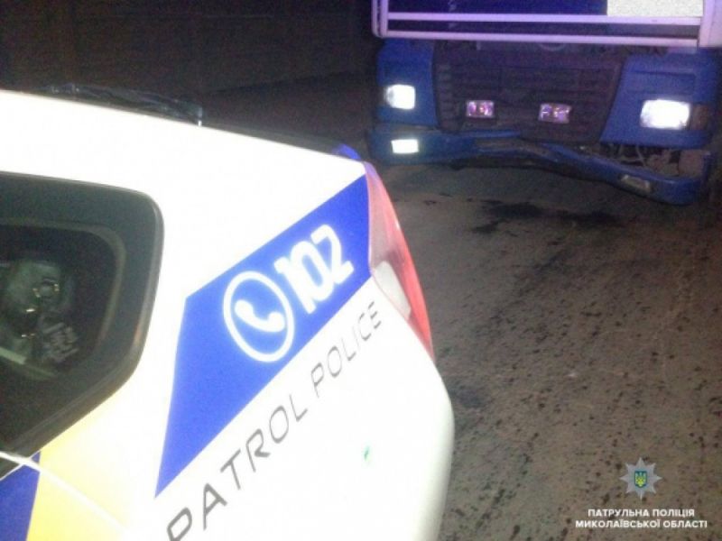 Вечером в понедельник, 26 февраля, бдительные николаевцы сообщили экипажу патрульной полиции о том, что на пересечении улиц Никольской и Малой Морской водитель грузовика с полуприцепом совершил ДТП. Об этом сообщили в патрульной полиции Николаева.