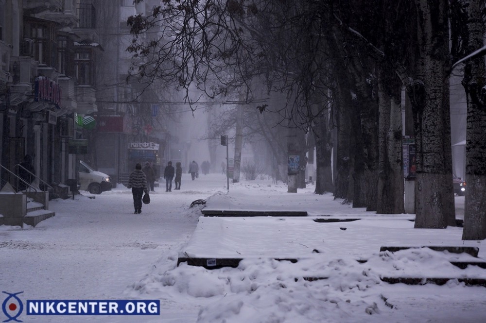 Зима попрощалась с Херсоном шквальным ветром, метелью и сильным снегопадом. ФОТОРЕПОРТАЖ
