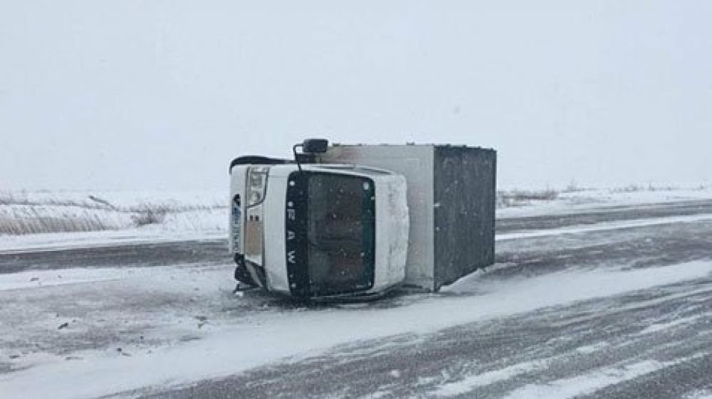 Водитель грузовика не справился с управлением на скользкой дороге, что привело к перевороту, сообщает 7 канал.