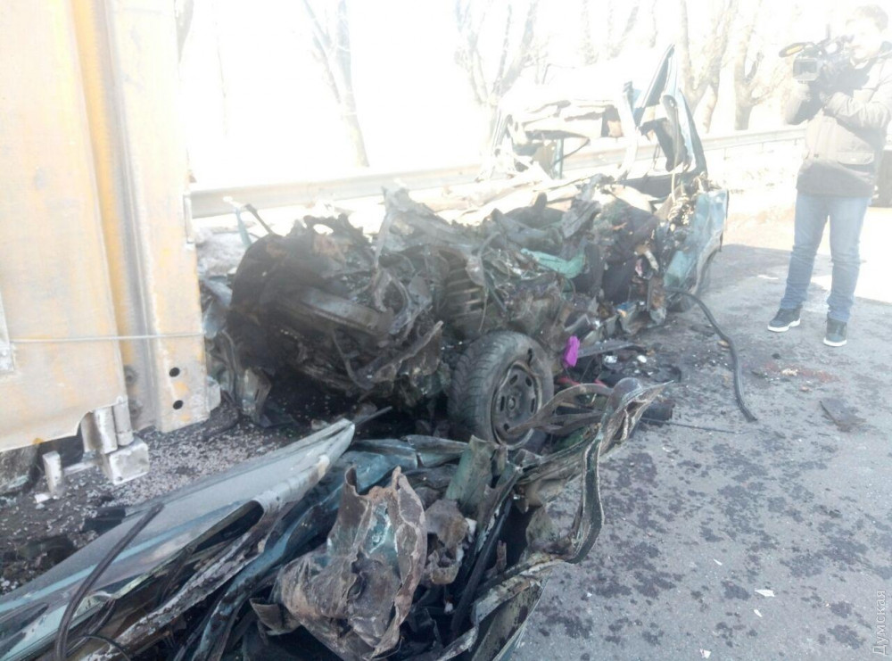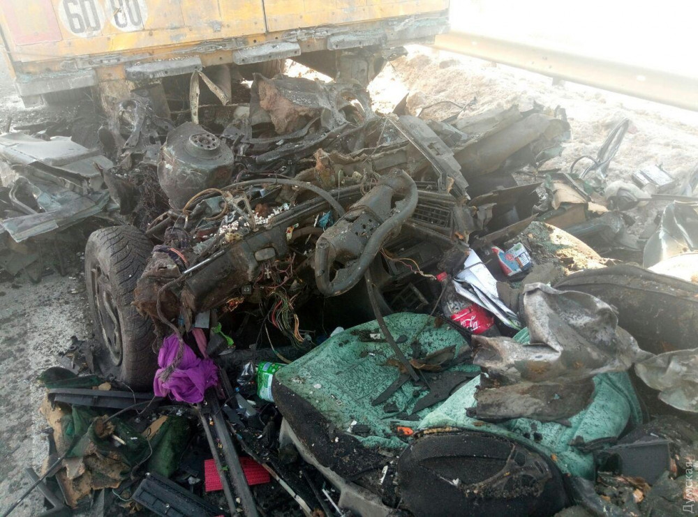 Под Одессой произошло жуткое ДТП: у Клеверного моста «Фольксваген» на полном ходу врезался в фуру