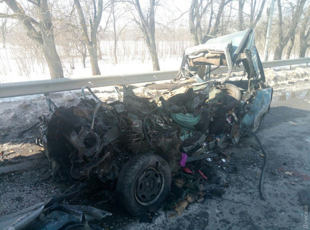 Как сообщили в патрульной полиции, авария произошла примерно в 9:00. В направлении Одессы двигался грузовой автомобиль «ДАФ». За ним с превышением скорости шел «Фольксваген Гольф», который врезался в фуру.