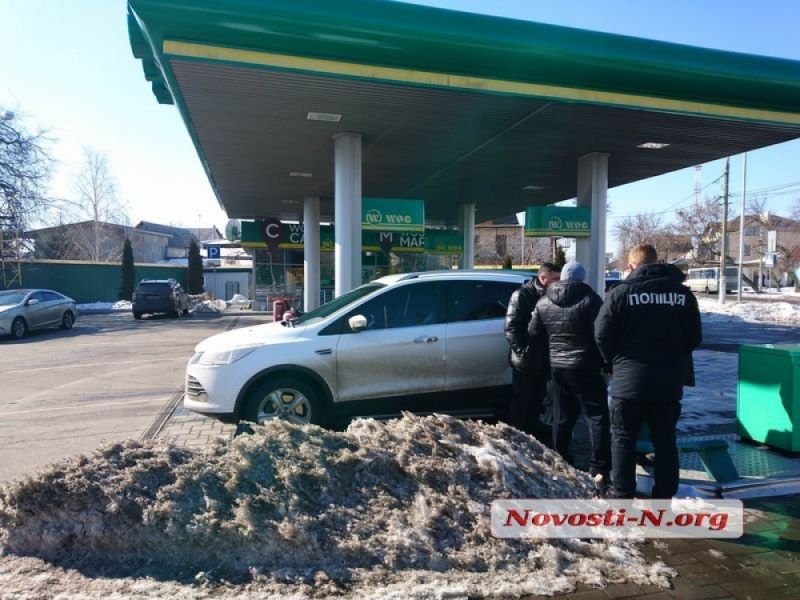 В центре Николаева вооруженный «кавказец» пытался ограбить машину прямо на заправке