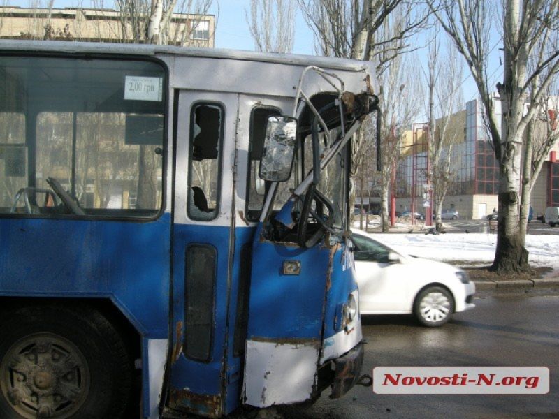 Утром во вторник, 6 марта, на проспекте Центральном в Николаеве троллейбус 2-го маршрута врезался в электроопору.