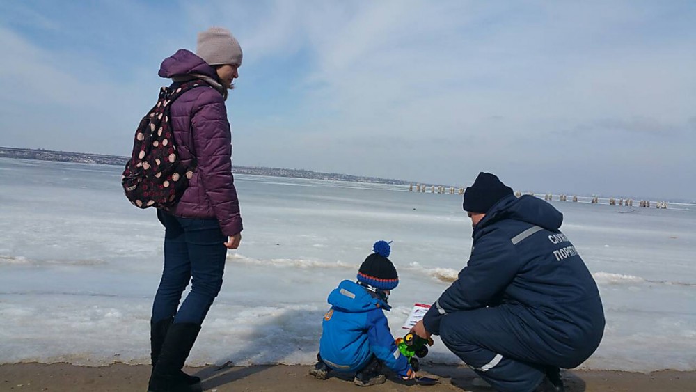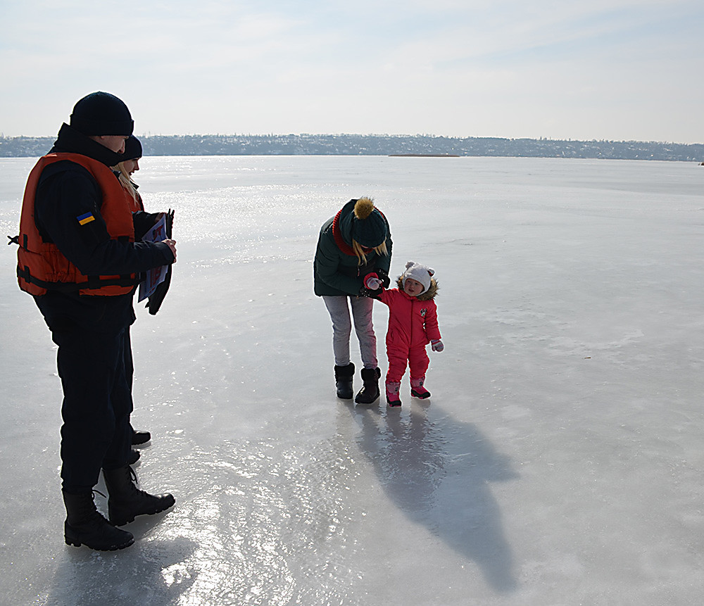 Во избежание несчастных случаев на обледенелых водоемах спасатели совместно с представителями социальной службы и патрульной полиции провели рейд по побережью реки Южный Буг.