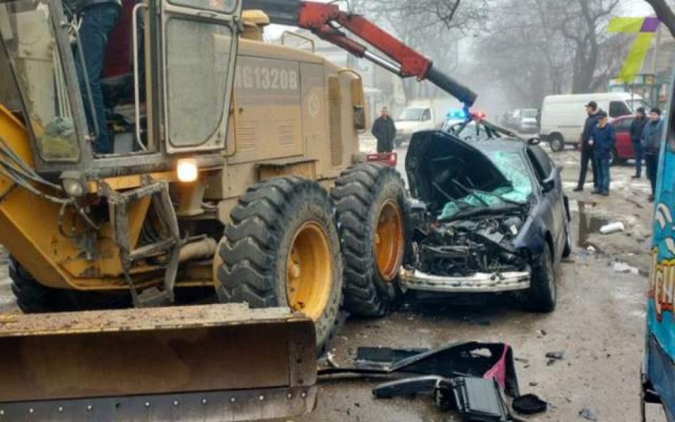 В Одессе автомобиль с молодыми людьми столкнулся со снегоуборочной машиной