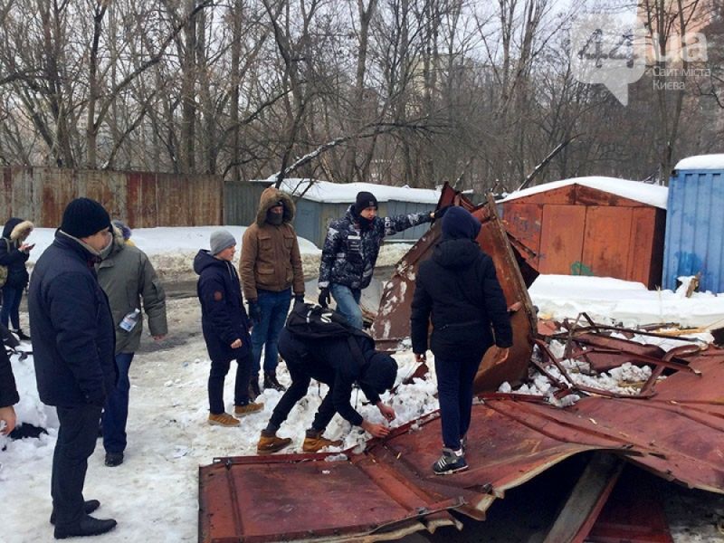 "Работники благоустройства, согласно предписанию, проводили демонтаж гаражей. На место прибыли народный депутат Юрий Левченко и депутат Киевсовета Святослав Кутняк, которые пытались бросить бутылку с зажигательной смесью. В результате возникла потасовка, которую прекратили правоохранители", — говорится в сообщении пресс-служба полиции Киева.