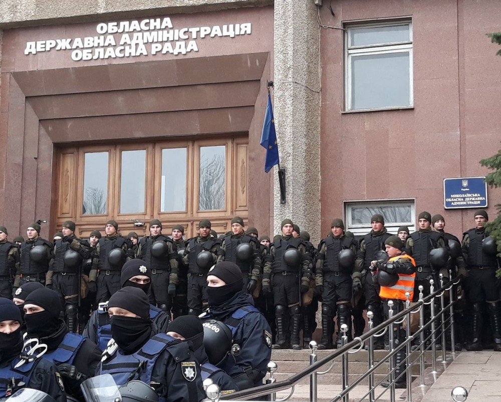 В четверг, 29 марта, здание Николаевского областного совета охраняют около тысячи правоохранителей разных подразделений. На месте находятся рота особого назначения полиции Николаева, Одессы и Херсона, а также тактико-оперативная рота Николаева.