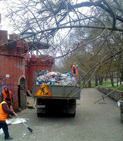 Свалку мусора из Шевченковского парка посреди центра Херсона начали вывозить.