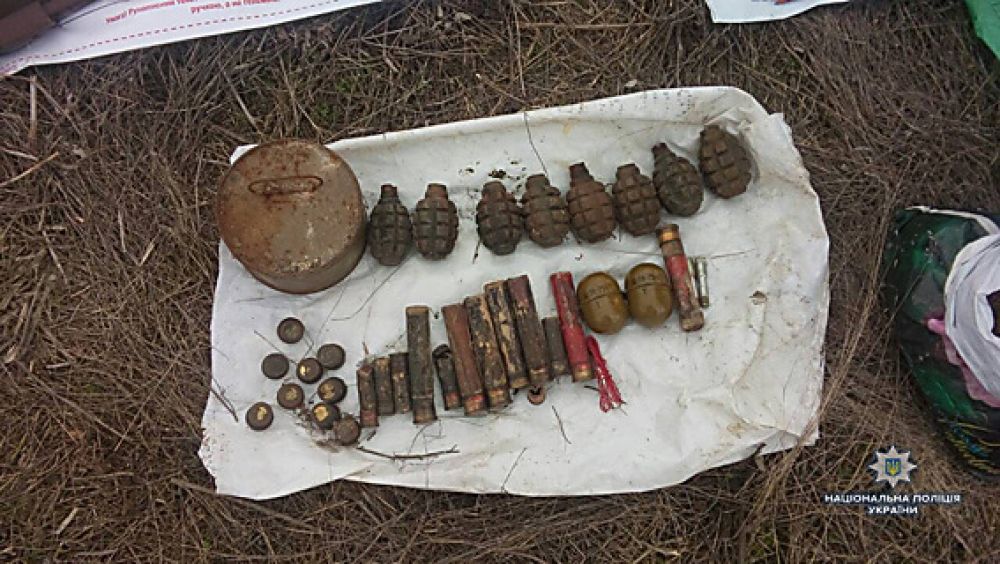 Оперативники Управления уголовного розыска, сотрудники Березанского отделения полиции и взрывотехники изъяли из тайника, который нашли в степи между селами Тронка и Даниловка в заброшенной шахте по добыче камня, более 350 патронов калибра 7.62 мм, 369 патронов калибра 5.45 мм, восемь корпусов от гранаты Ф-1, два корпуса от гранаты Ф-5, три взрывателя к ним, гранатомет (РПГ-22), два килограмма пороха, сигнальные ракеты, дымовую мину и девять капсюлей-воспламенителей.