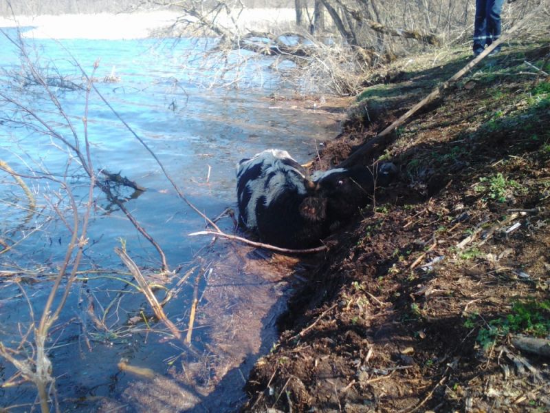 В 11:40 на линию «101» позвонила жительница села Антоново Братского района и сообщила о том, что ее корова упала в реку и застряла в заиленном участке водоема. Местные жители самостоятельно не смогли извлечь животное.