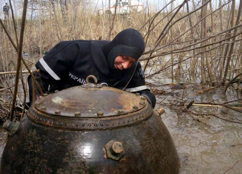 Сегодня на 59-м км реки Дунай, у острова Кислицкий специалисты-пиротехники обнаружили еще одну морскую мину «Sautter-Harle», произведенную без малого сто лет тому назад.