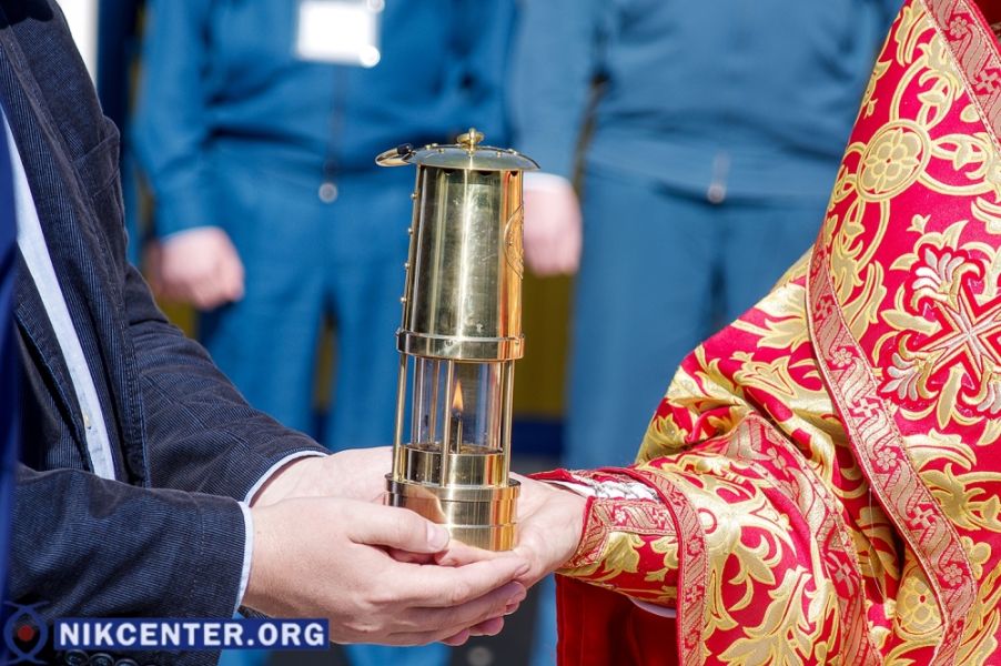 Огонь, доставленный из Киева, передали архиепископу Симферопольскому и Крымскому Клименту настоятель Святониколаевского храма г. Херсона протоиерей о. Игорь Семенихин и глава Херсонской ОГА Андрей Гордеев.