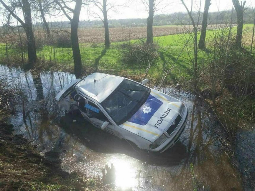 Под Мукачево сотрудники полиции после празднования Пасхи лихачили на патрульном автомобиле и слетели с дороги в кювет.