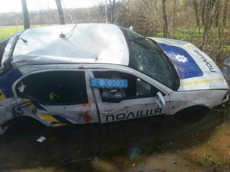 Под Мукачево сотрудники полиции после празднования Пасхи лихачили на патрульном автомобиле и слетели с дороги в кювет.
