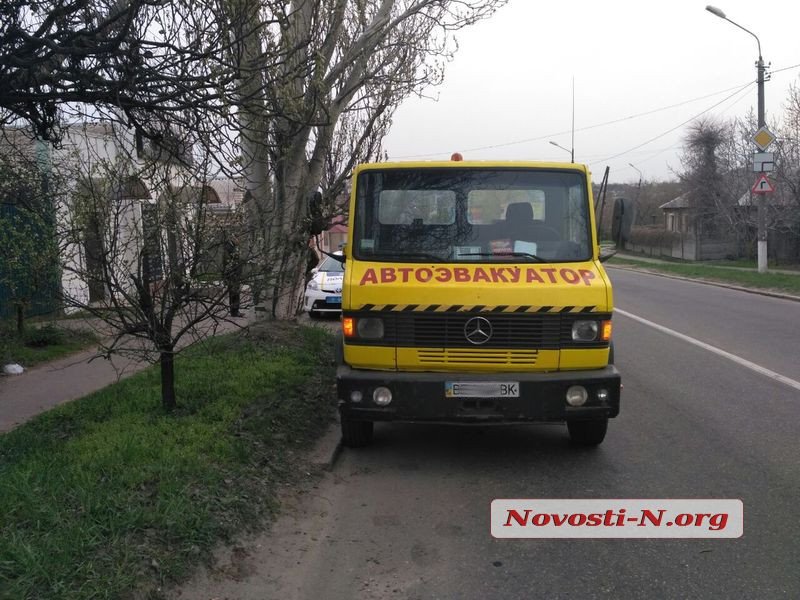 В Николаеве иномарка съехала с эвакуатора разбила полицейский автомобиль