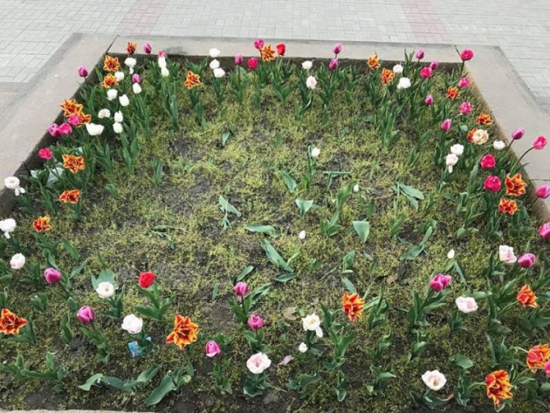 В Николаеве уничтожили тюльпановую клумбу на Садовой: срезали более тысячи цветов