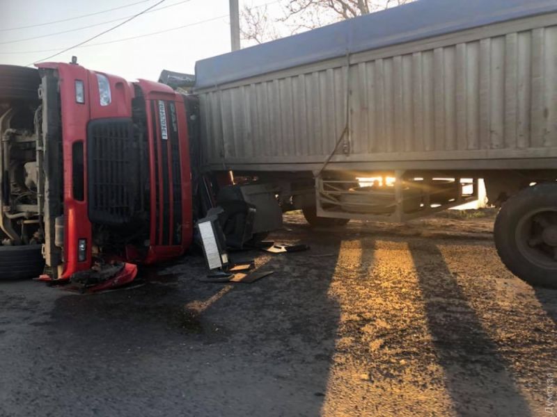 Под Одессой в результате столкновения двух фур одна перевернулась прямо на проезжей части