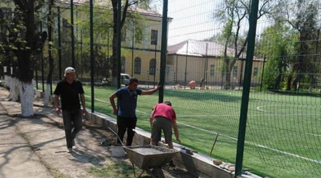После зимы частично разрушилась отмостка, проходящая по границам футбольного поля с искусственным покрытием. Подрядная организация провела ее восстановление.