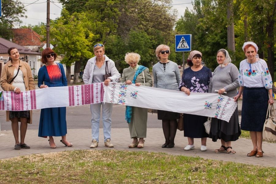 После служения молебня за всех православных женщин участники взялись за рушники и создали непрерывную цепочку, тем самым почтив матерей, а также поддержав единую поместную церковь в Украине.
