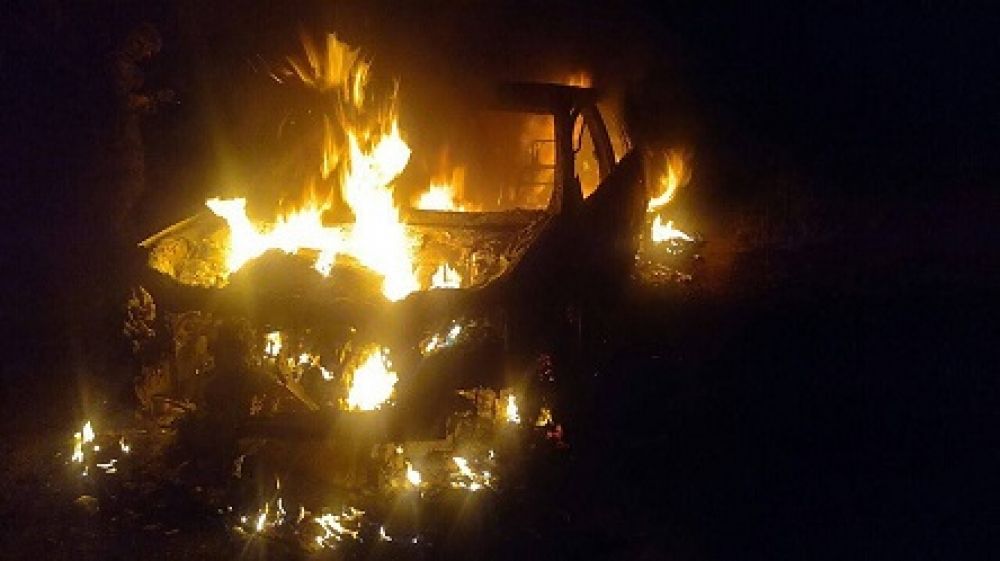 Видео того, как горит автомобиль, опубликовали и ставшие случайными свидетелями люди, которые в момент происшествия ехали по трассе.