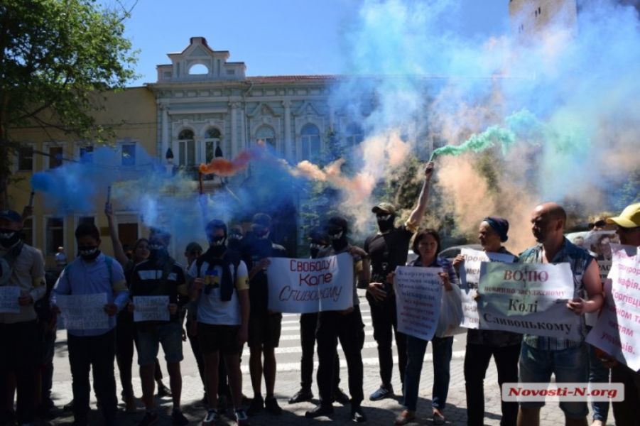 Днем в пятницу, 18 мая, под прокуратурой Николаевской области провели акцию в поддержку осужденного за убийство Николая Сливоцкого, сообщает интернет-издание «Новости-N».