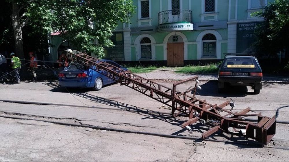 В Николаеве на ул. Потёмкинской упала электроопора, поврежден легковой автомобиль