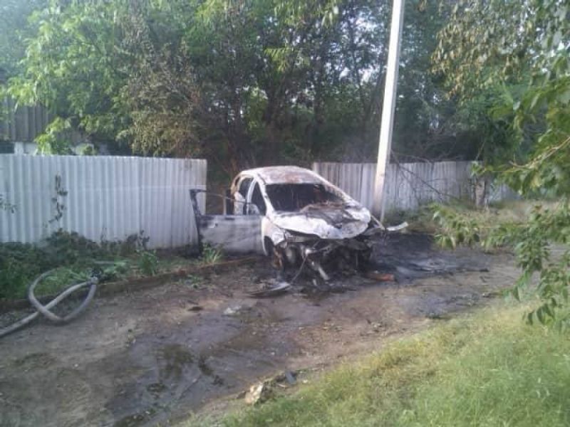 В Николаевской области автомобиль врезался в забор дома и загорелся