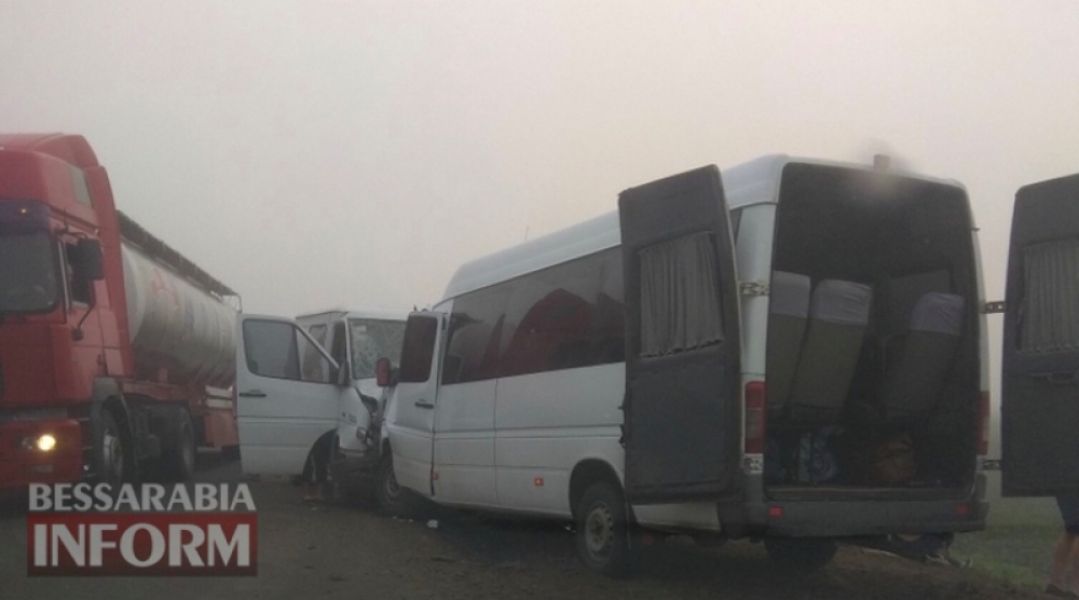 Как стало известно «Бессарабии INFORM», водитель грузового микроавтобуса Mercedes, в условиях густого тумана начал выполнять обгон фуры и выехал на встречную полосу, где в этот момент ему навстречу двигался пассажирский микроавтобус, выполнявший рейс «Килия-Одесса».
