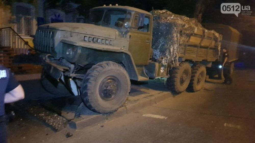 В понедельник ночью, 11 июня, в Николаеве военный "Урал" въехал в электроопору.