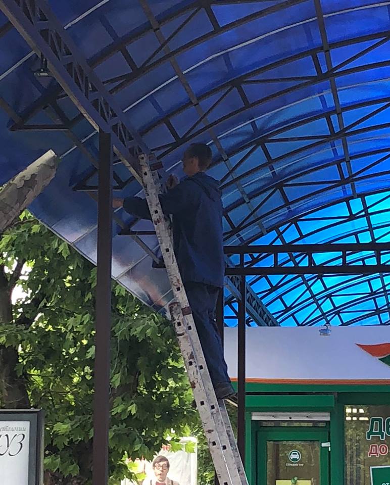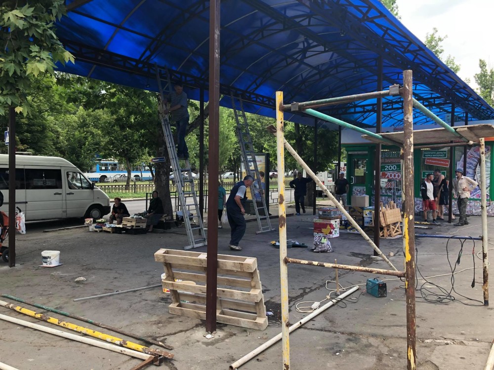 Утром во вторник, 12 июня, в Николаеве начались работы по разборке навеса на остановке общественного транспорта на пересечении проспекта Центрального и улицы 3-й Слободской.
