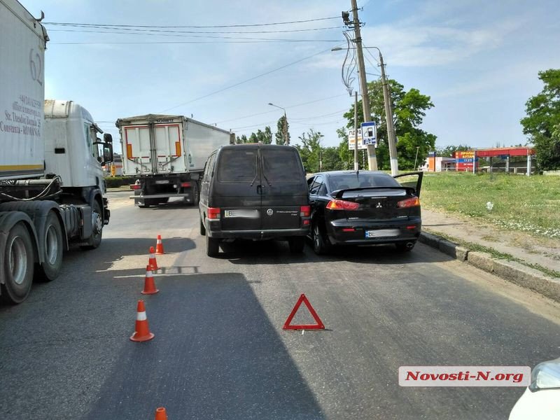 Утром в среду, 13 июня, на Терновском кольце на въезде в Николаев столкнулись автомобили Mitsubishi Lancer и Volkswagen Transporter, cообщает Новости-N.