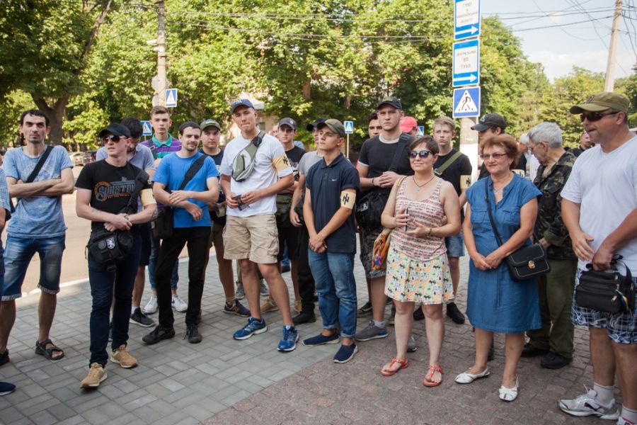 К 16:00 в указанном месте собрались представители "Свободы", "Правого сектора" и Социал-националистической ассамблеи. Активисты выступали против действий полиции на марше ЛГБТ-сообщества, прошедшего 17 июня в Киеве.