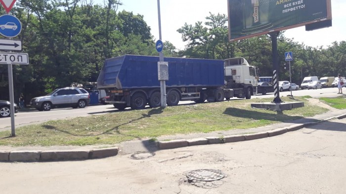 В Николаеве отстаивающиеся на обочине фуры создали затор и остановили движение транспорта по объездной дороге