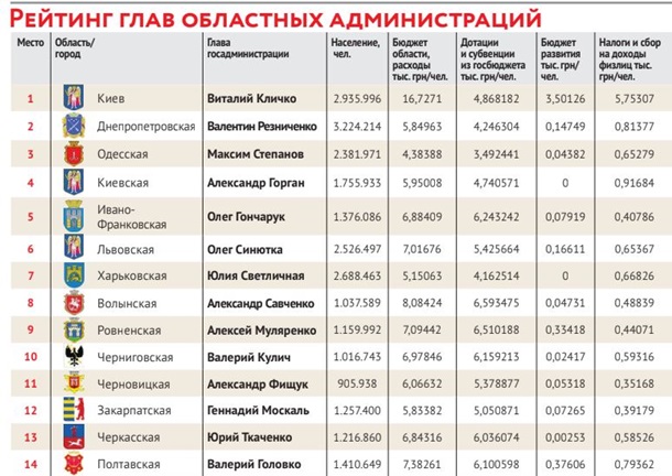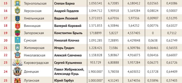 Журнал «Корреспондент» составил рейтинг глав облгосадминистраций.