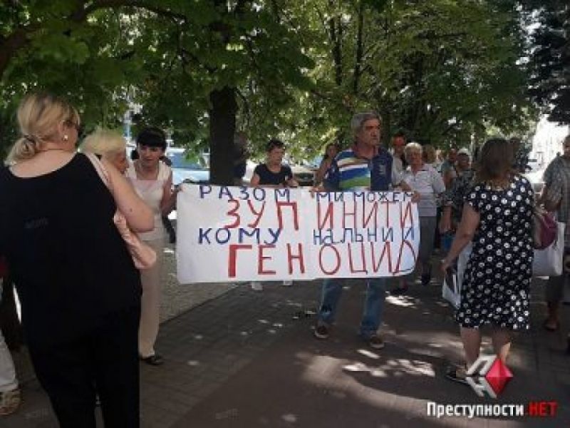В Николаеве в понедельник, 16 июля, к зданию мэрии вышли люди на мирный пикет против повышения тарифов за квартирную плату.